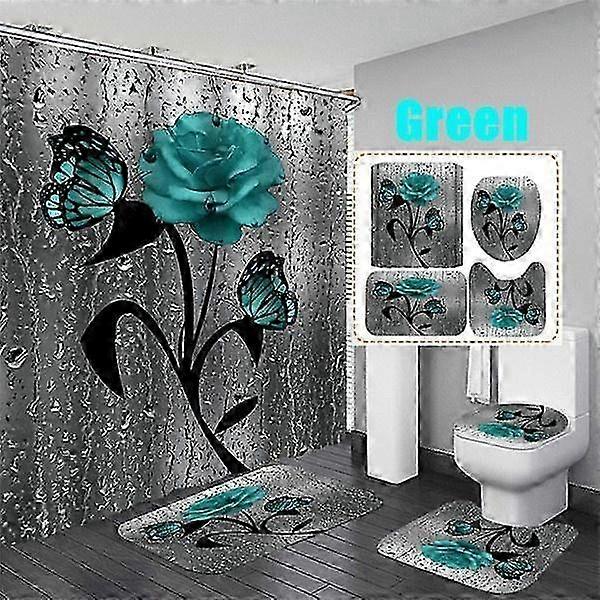 2025 Blooming Flowers Rose Butterfly Shower Curtain Set Waterproof Bathroom Toilet Seat Cover Bath Non-Slip Mat Rug Carpet Bath Decor