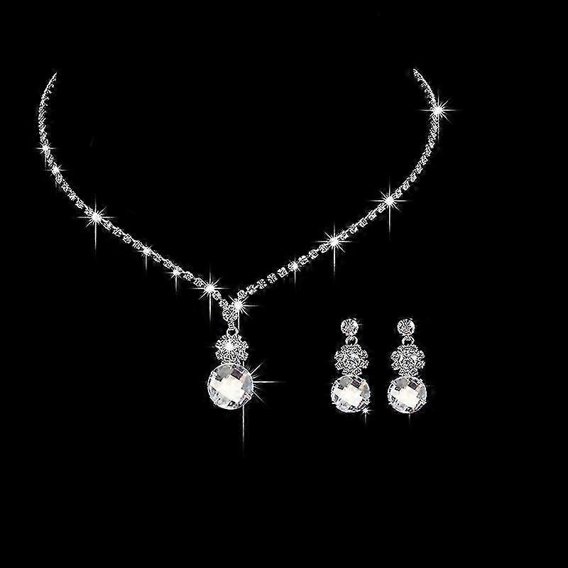 2025 Two-piece Rhinestone Alloy Jewelry Set Geometric Round Bridal Jewelry Necklace