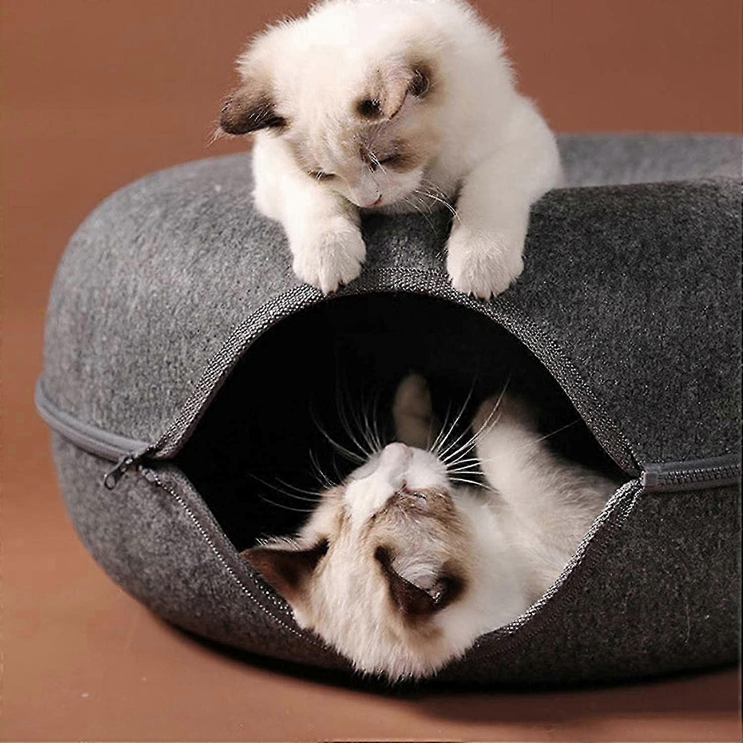 2025 Four Seasons Available Cat Nest, Round Felt Pet Nest, Cat Tunnel Nest, Felt Cat Bed Donut Felt Pet Nest Semi-closed Washable Pet Kennel