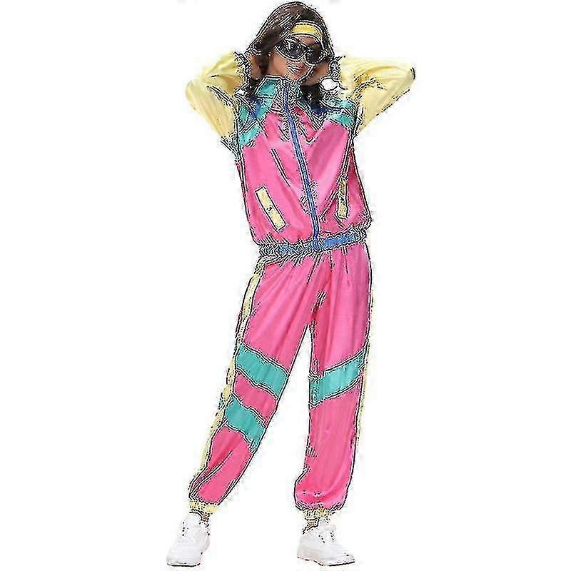 Men And Womens 80s Tracksuit Retro Hip Hop Windbreaker Women Disco Tracksuit Sets Colorblock One Piece Outfits Setjacket Windbreaker Elastic