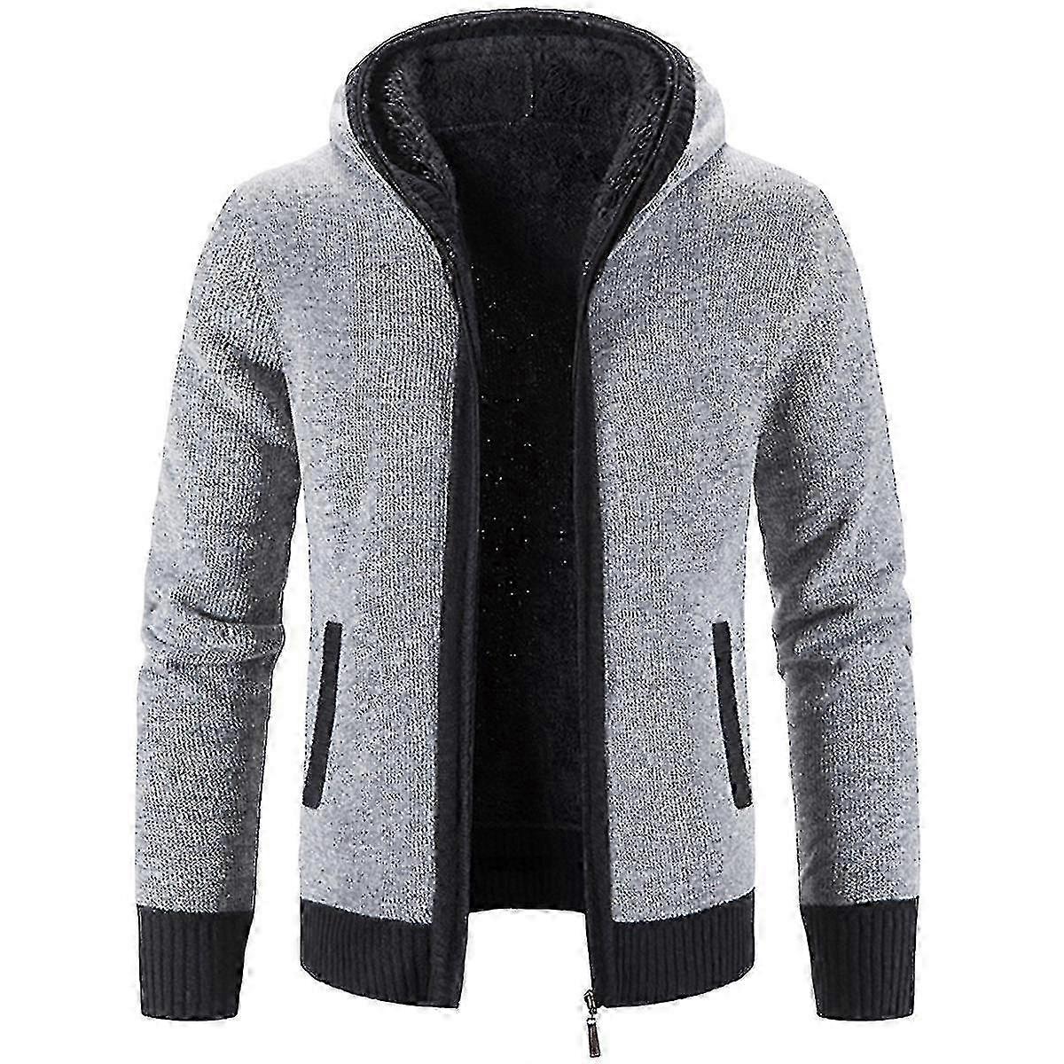 2025 Mens Winter Hooded Thick Cardigan Fleece Lined Knit Sweater (xiatian)