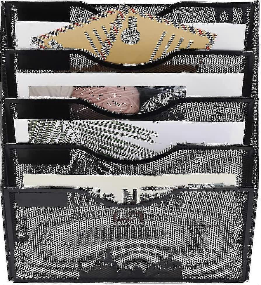 5 Tier Wall Mount File Rack Hanging Mail Organizer Metal Wall Mount Magazine Rack, Black 2025