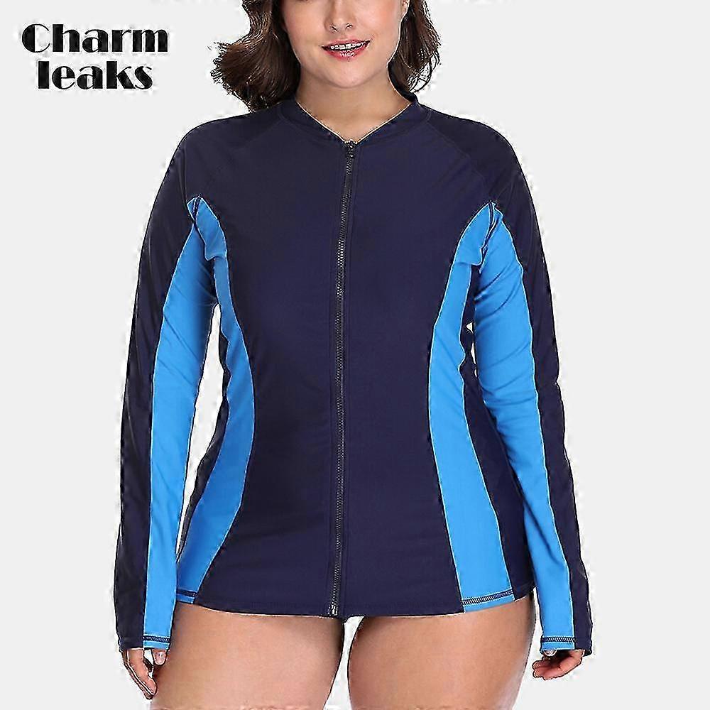 2025 Charmleaks Women Long Sleeve Rashguard Zipper Swimsuit Shirts UPF50+ Plus Size Swimwear UV-Protection Rash Guard Color Block Beach Wear