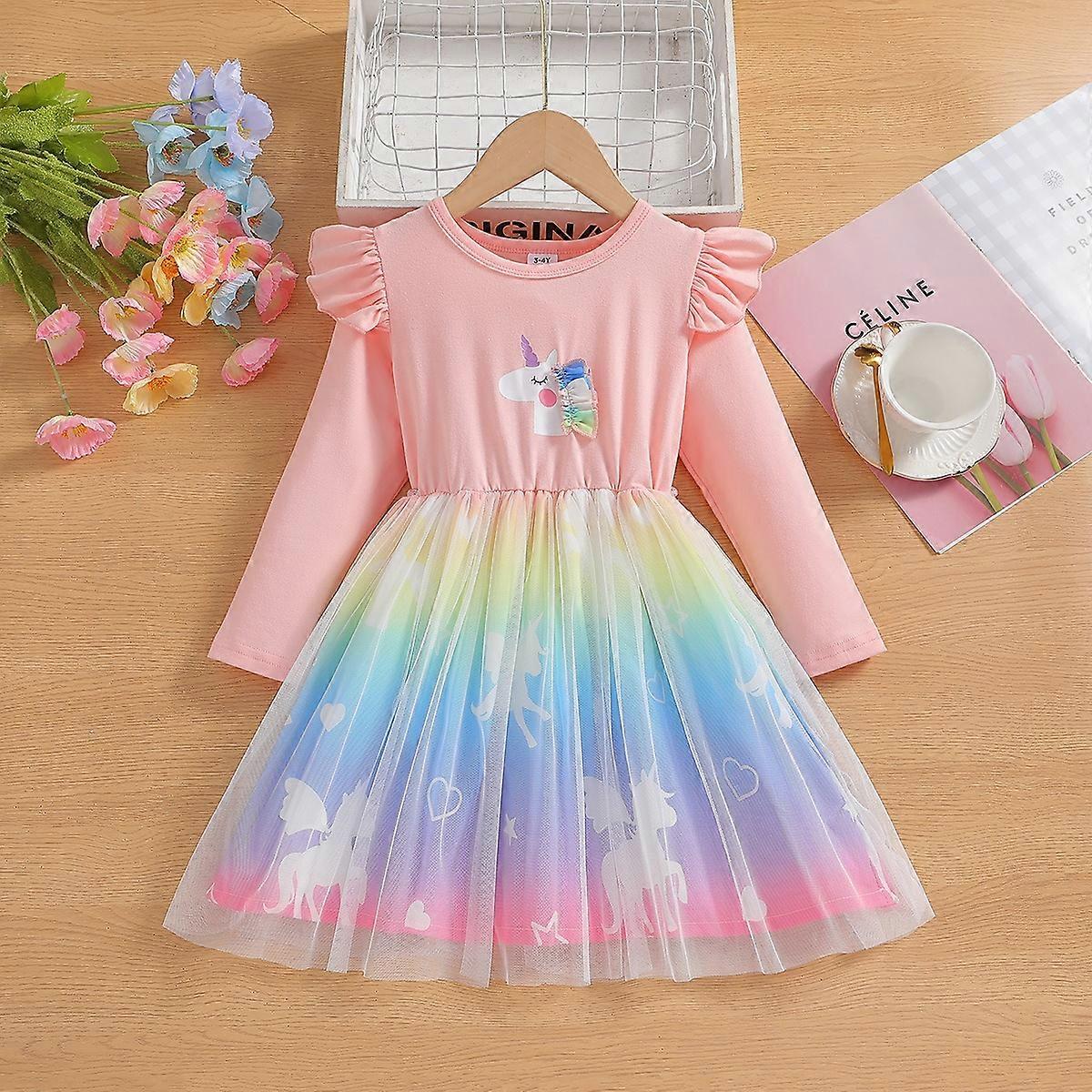 2025 New Princess Dress Unicorn Girls Dress Spring Autumn Kids Clothes Birthday Dress Party Long-sleeved for Children Rainbow