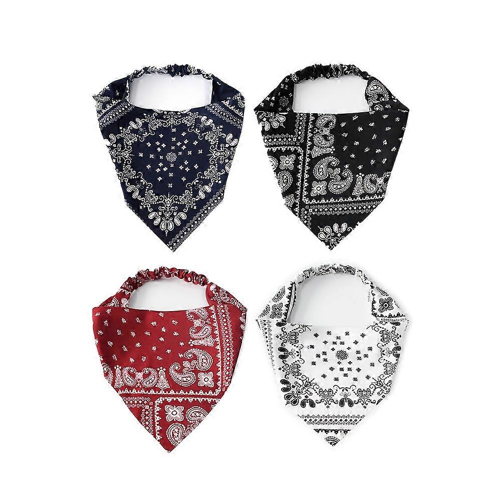 4 pieces of cashew flower triangle headband, unisex chiffon hip-hop versatile elastic headscarf
