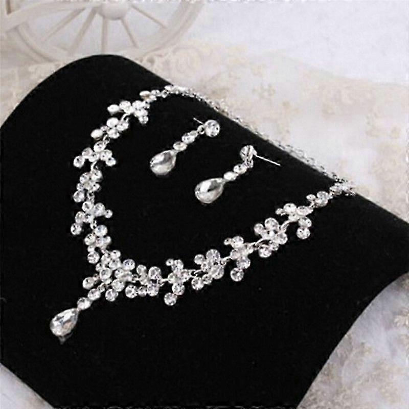 Women's Silver Bridal Jewelry Set with Crystal Rhinestone Necklace Earrings