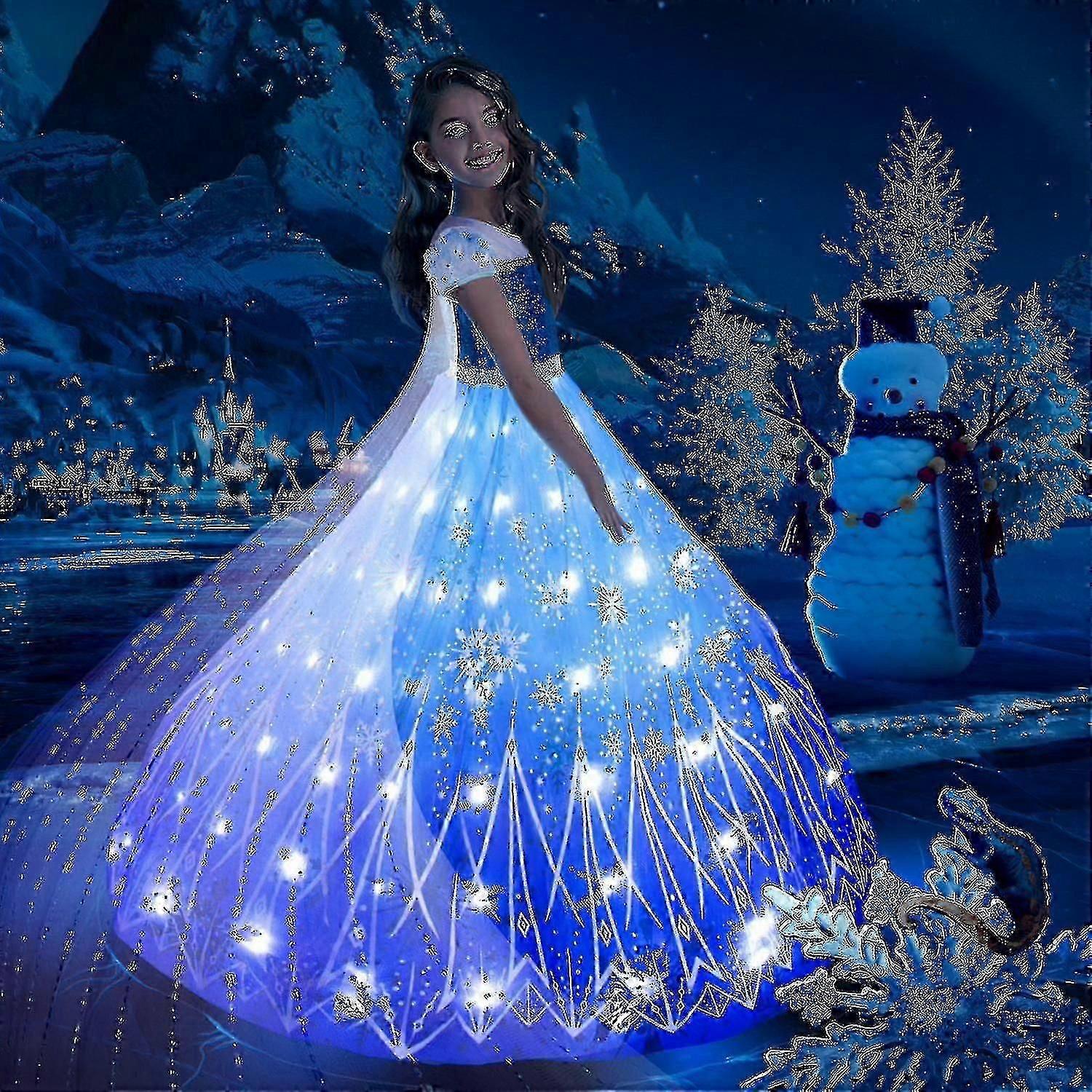 Robe lumineuse LED Anna Elsa pour filles, robe de bal de Noël/carnaval de la Reine des Neiges