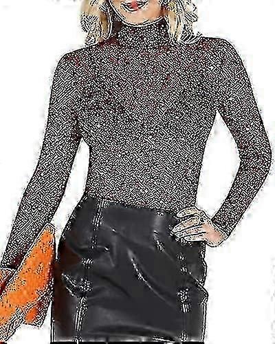 Glitter Sheer Mesh Top Women Sexy Long Sleeve Blouse