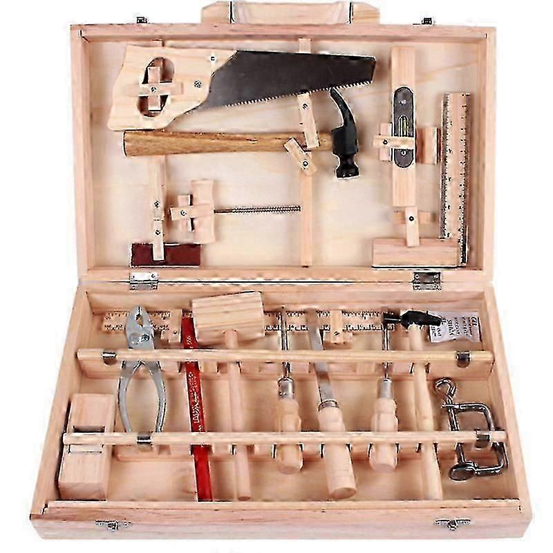 16-Piece Kids' Real Tool Set with Wooden Toolbox