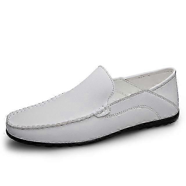 Men's White Leather Slip-On Loafers - Soft Italian Moccasins, Lightweight, Sizes 38-47
