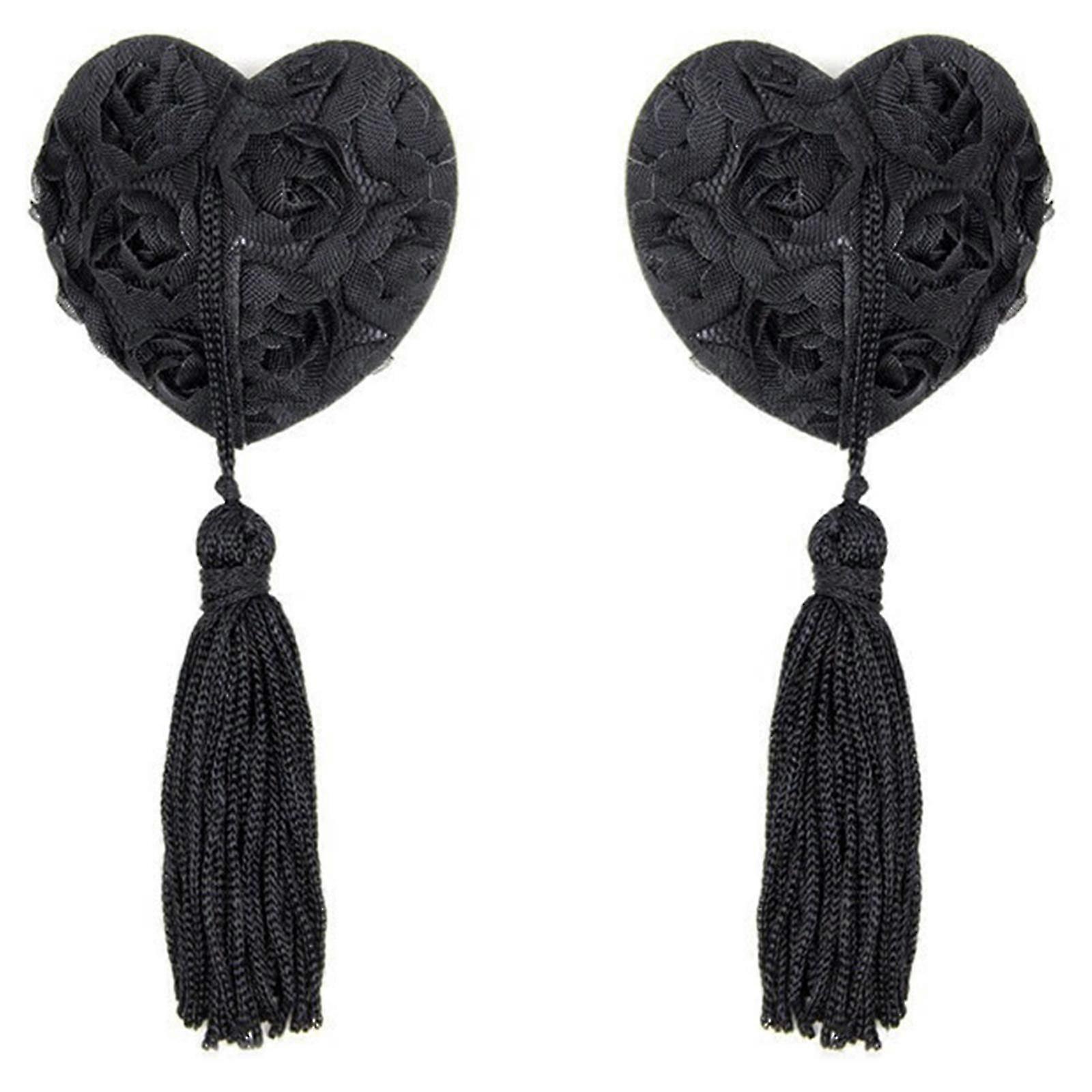 SQLX Women Sequins Tassels Nipple Cover Reusable Adhesive Pasties Breast Cover Lace Sticky Bra Chest Pad Lingerie Accessories Flower black Hk