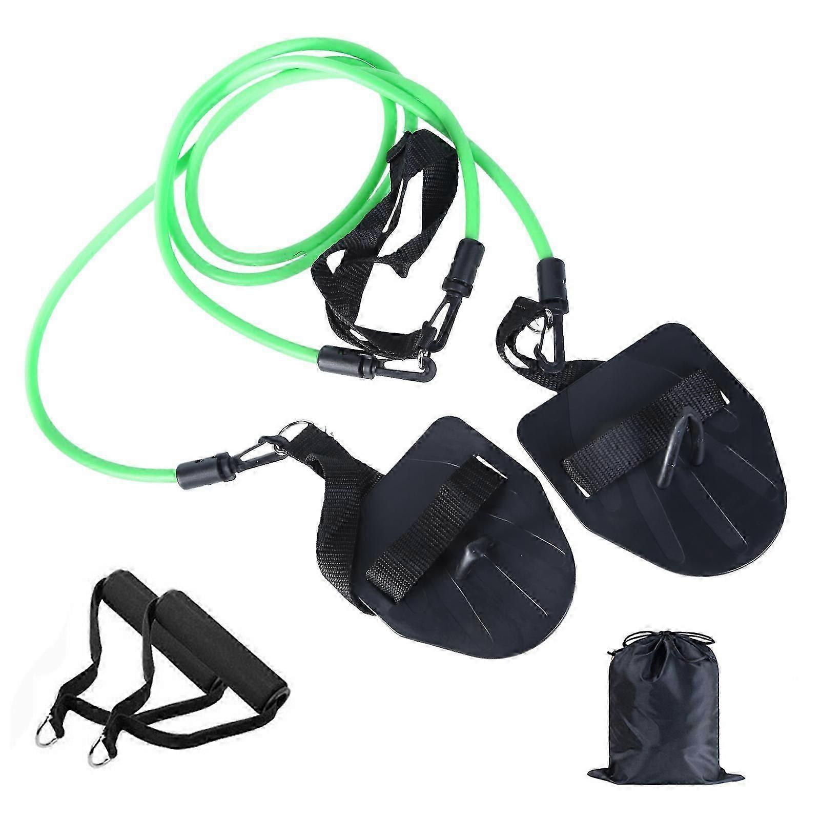 SQLX Swimming Arm Strength Trainer With Swim Paddle Swimming Resistance Exercise Band Elastic Rope Swimming Accessorys Green Hk
