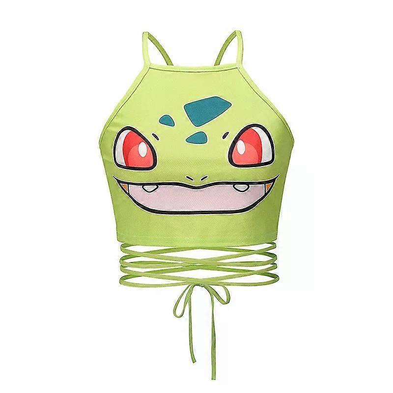 Pokemon Cartoon Anime Kawaii Squirtle Bulbasaur Pikachu Jigglypuff Togepi Gengar Summer Top T-shirt Sexy Strap Vest Girl Gifts