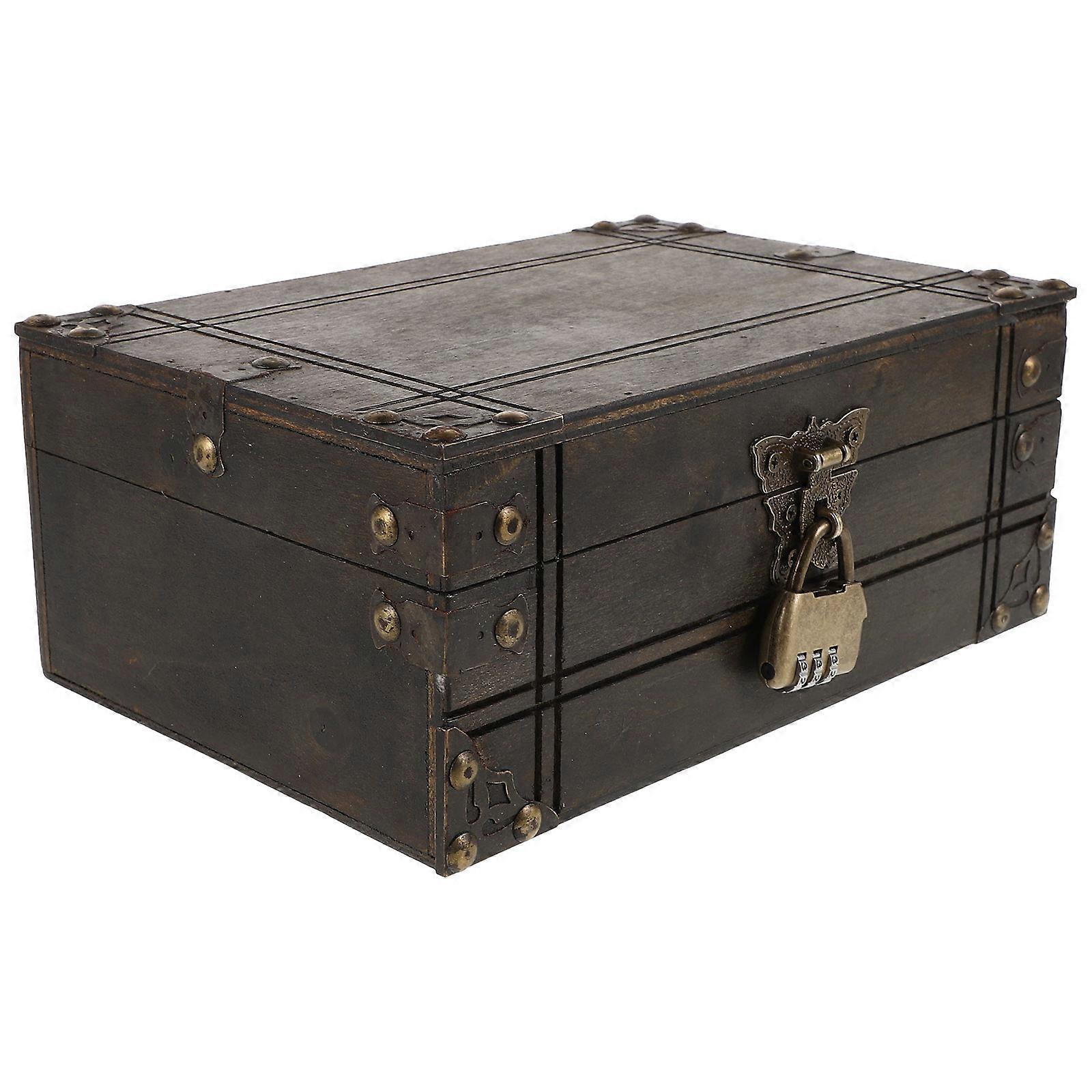 Dark Brown Wooden Treasure Chest for Storage Vintage Lock Box