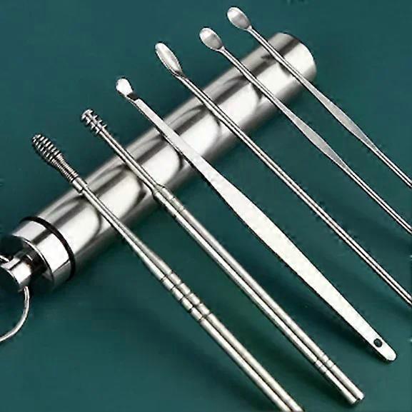 6 pcs/set Ear Cleaning Spoon Ear Protector Health Care Dirt Remover Stainless Steel Ear Picking Tool Set Cleaner