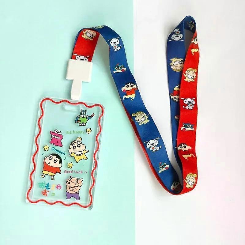 Cartoon Crayon Shin-chan Transparent ID Holders with Lanyards Kawaii Shinchan Card Case Student ID Card Holder Accessories Gifts