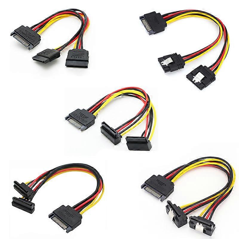 15Pin SATA Male To 2 Female Straight Elbow SATA 15Pin Power Hard Disk Splitter Connector Power Cord Suitable for Hard Disk Drive