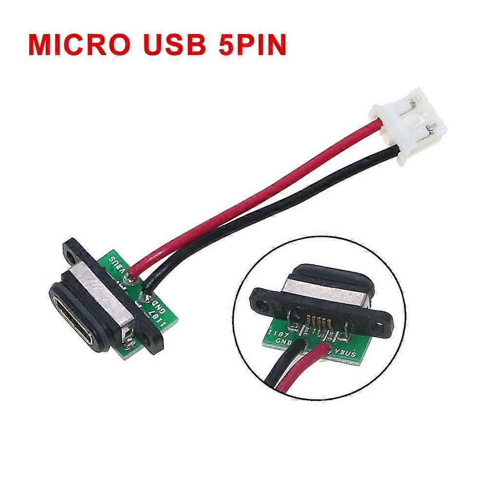 5PCS 5 Pin Micro USB Connector Port Socket Female with Screw Hole Waterproof Power Charging Dock With Cable Terminal