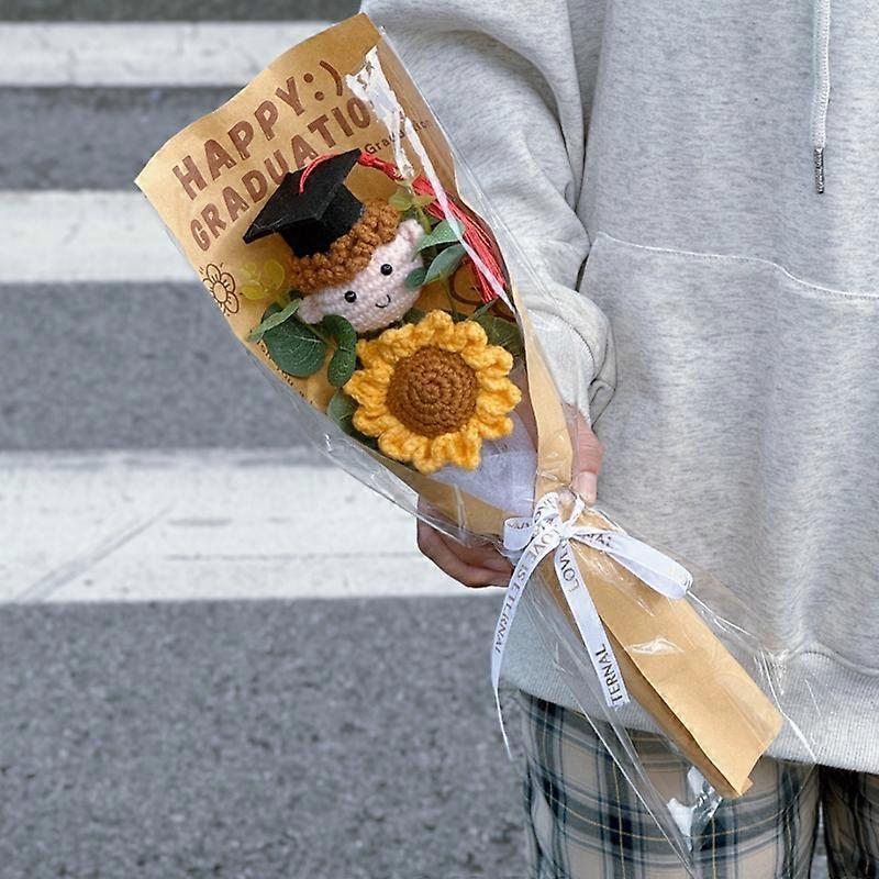 Handmade Graduation Bouquets Artificial Flowers Crochet Sunflower Bouquet Valentine's Mother's Day Birthday Gift Knitted Flowers