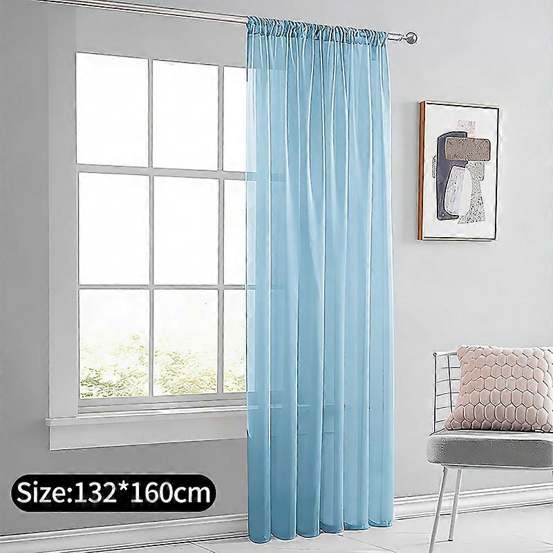 Transparent Gauze Curtains Solid Color Sheer Curtain Voile Screening Drape Panel Tulle For Living Room Balcony Curtains Sky Blue