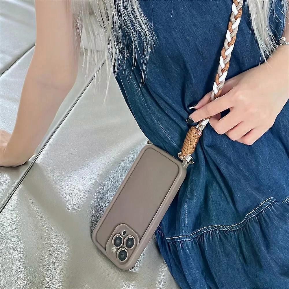 Luxury Matte Liquid Silicone Crossbody Necklace Cord Lanyard Soft Case For iPhone16 14 Pro Max 15 13 12 11 XS Shockproof Cover