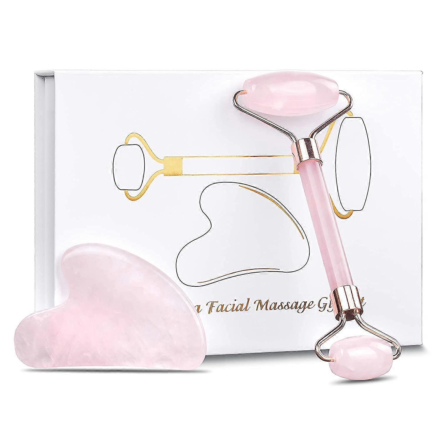 Face Roller Jade and Rose Quartz Gua Sha Set for AntiAging, Puffiness, Wrinkles and Dark Circles