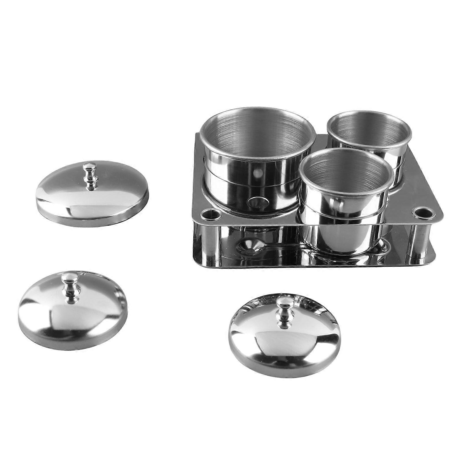 3pcs Stainless Steel Nail Art Storage Containers with Lids, Brush Holder Design for Salon and Home