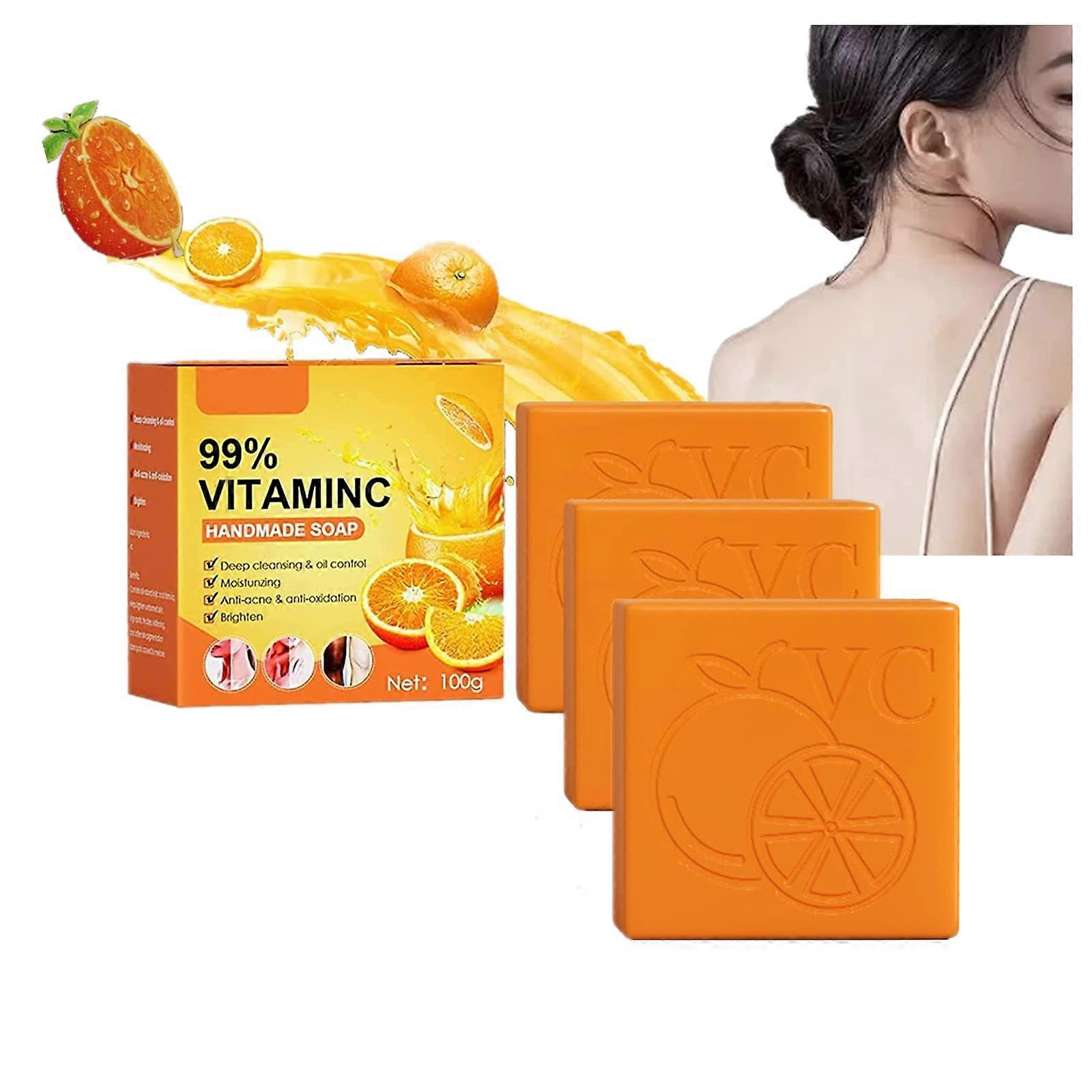 Vitamin C Whitening Soap with Orange Extract, Brightening and Moisturizing Bar for Face and Body, 3 Pcs