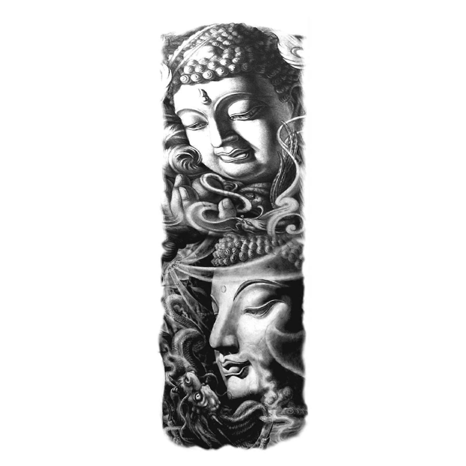 Temporary Sleeve Tattoos Waterproof Full Arm Design with Japanese Buddha Dragon Lotus for Adults