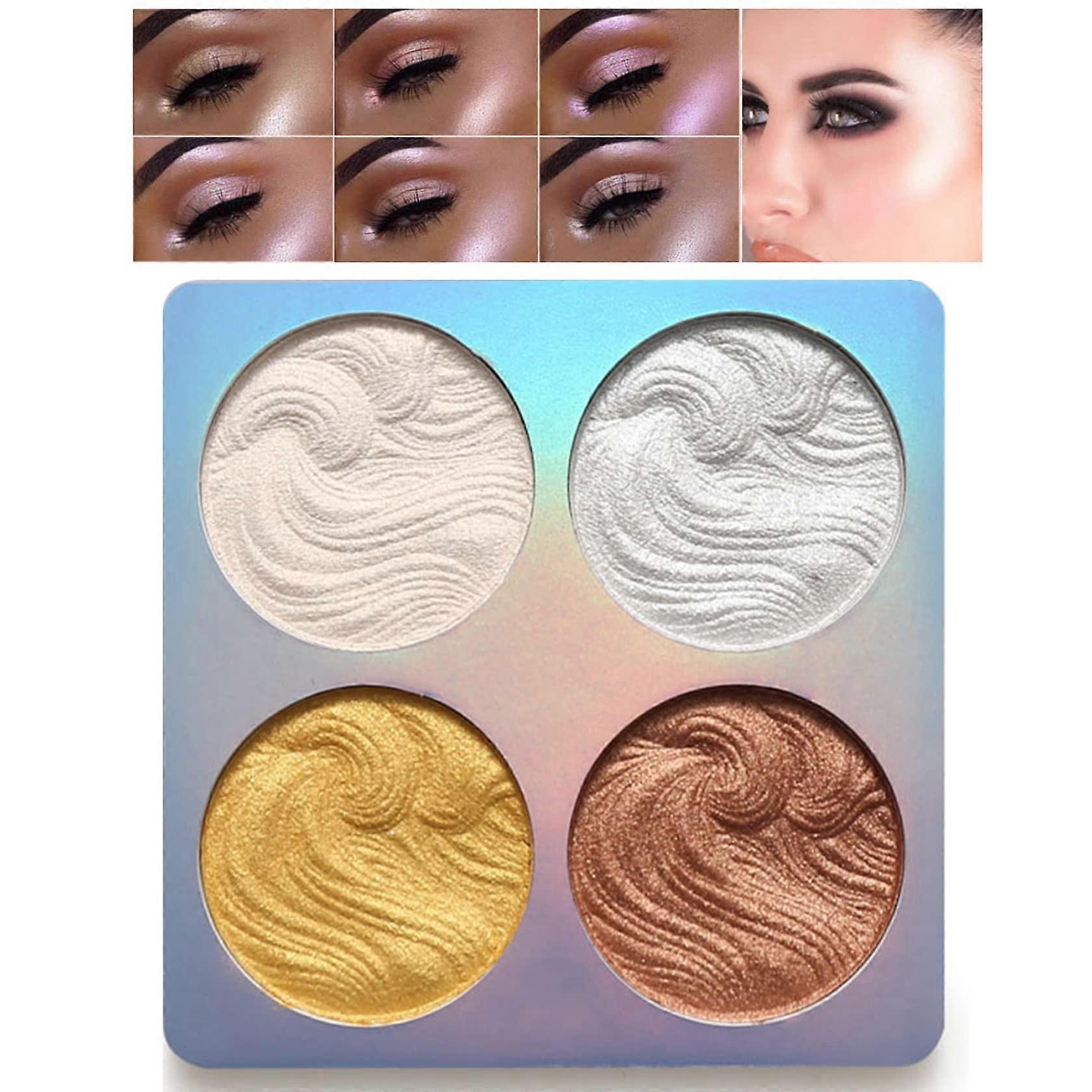 Highlighter Palette with Four Trendy Shades, Long Lasting Waterproof Shimmer Glow, A01