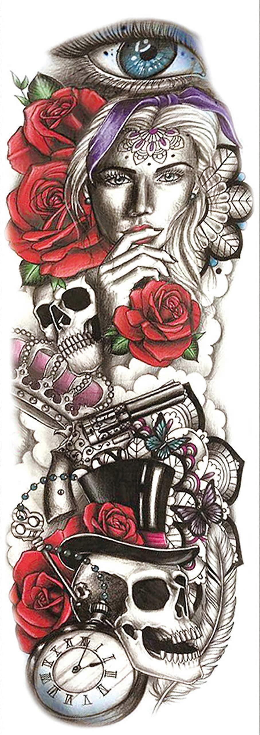 6 Sheets Full Arm Temporary Sleeve Tattoos, Realistic Waterproof Tattoo Stickers, Buddha and Flower Design, 17x48cm Large Coverage for Arm or Neck