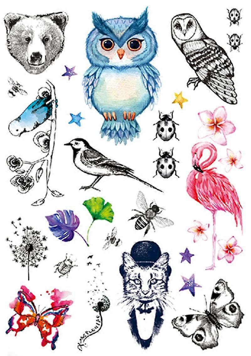 Temporary Tattoo Sticker Pack 7 Sheets, Waterproof, 14.8 x 21 cm Quick way to add stylish body art without commitment. This set includes seven watertransfer tattoo sheets featuring owl and flower designs. Each sheet measures 14.8 x 21 cm, providing multiple motifs per sheet for flexible placement and creative combinations. Suitable for women, men, adults and kids as party supplies or everyday decorative accents. Key benefits No permanent commitment. Try different looks for parties, events, photos or everyday fun without long term changes. Waterproof performance. Designed to hold up during normal activities that involve water exposure. Ready to use. Transfer stickers apply in seconds with simple water activation and remove easily when you want a fresh look. Versatile sizing. 14.8 x 21 cm sheets give space for several medium and small tattoos on each sheet. Inclusive use. Designed for women, men, adults and children for birthday parties, gatherings and group events. Product features Quantity: 7 sheets per pack. Design style: owl and flower motifs as shown. Sheet dimensions: 14.8 x 21 cm each. Type: watertransfer temporary tattoo stickers with semi permanent appearance. Intended use: body decoration for parties, costumes, photo shoots and casual wear. Practical use scenarios Birthday parties and party favors: Apply matching designs to guests for a coordinated theme or hand out sheets as takehome favors. Costumes and events: Finish a costume or cosplay with detailed temporary tattoos that enhance character looks without long term commitment. Photo shoots and festivals: Add visual interest for photos or festival days where quick, removable body art is preferred. How to apply and remove Application: Clean and dry the skin area. Remove the clear protective film, place the tattoo face down on skin, wet the paper thoroughly with a cloth for 30 seconds, then gently peel the backing off. Allow the tattoo to dry. Removal: Use baby oil, makeup remover or rubbing alcohol and rub gently until the tattoo comes off. What this product solves Eliminates the need for permanent tattoos when you want a temporary style change. Provides an easy, waterresistant option for group events and themed activities. Offers multiple designs per sheet for variety and creative placement. Pack contents and size summary 7 sheets of temporary tattoo stickers. Each sheet measures 14.8 x 21 cm. Designs include owl and flower motifs suitable for all ages. Simple, flexible, and designed for repeated use at parties and events.