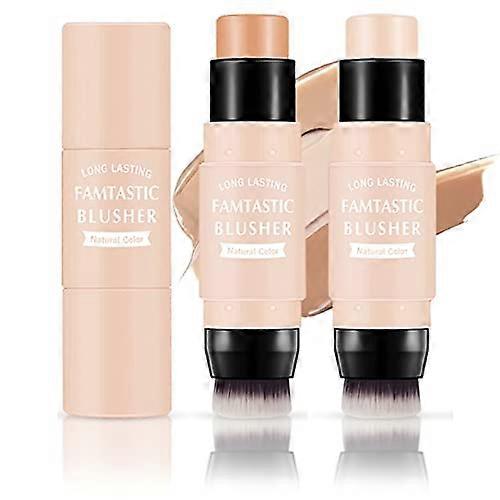 Dual Ended Contour and Highlighter Stick with Builtin Brush, Waterproof Cream Makeup