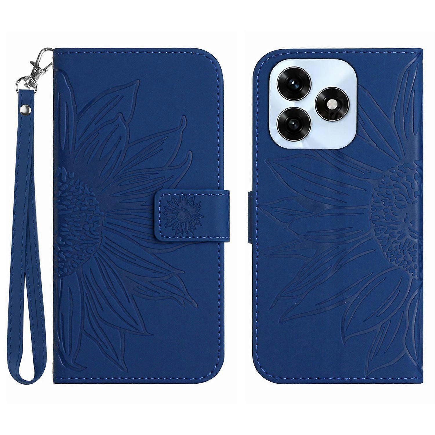 For Honor X5c Plus 4G Case Sunflower Imprint Leather Wallet Phone Cover with Wrist Strap