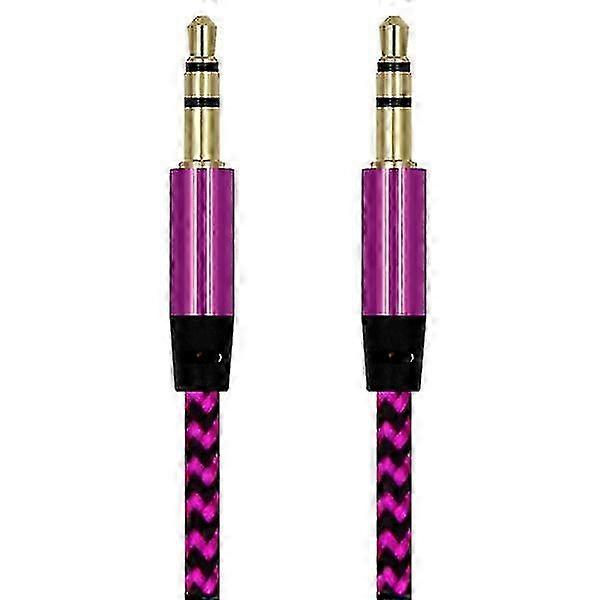 3.5mm Car Aux Cable Male to Male Nylon Braided 1M for Smartphone Speaker, Rose Red