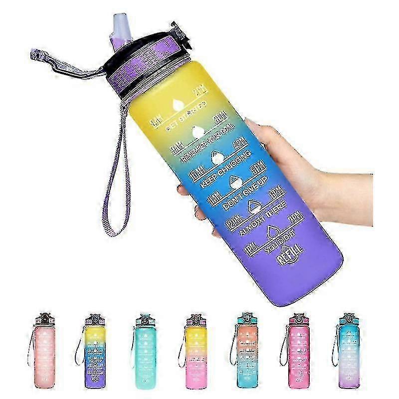 1 Liter BPA Free Motivational Water Bottle with Time Markings, Yellow Blue Purple for Sports