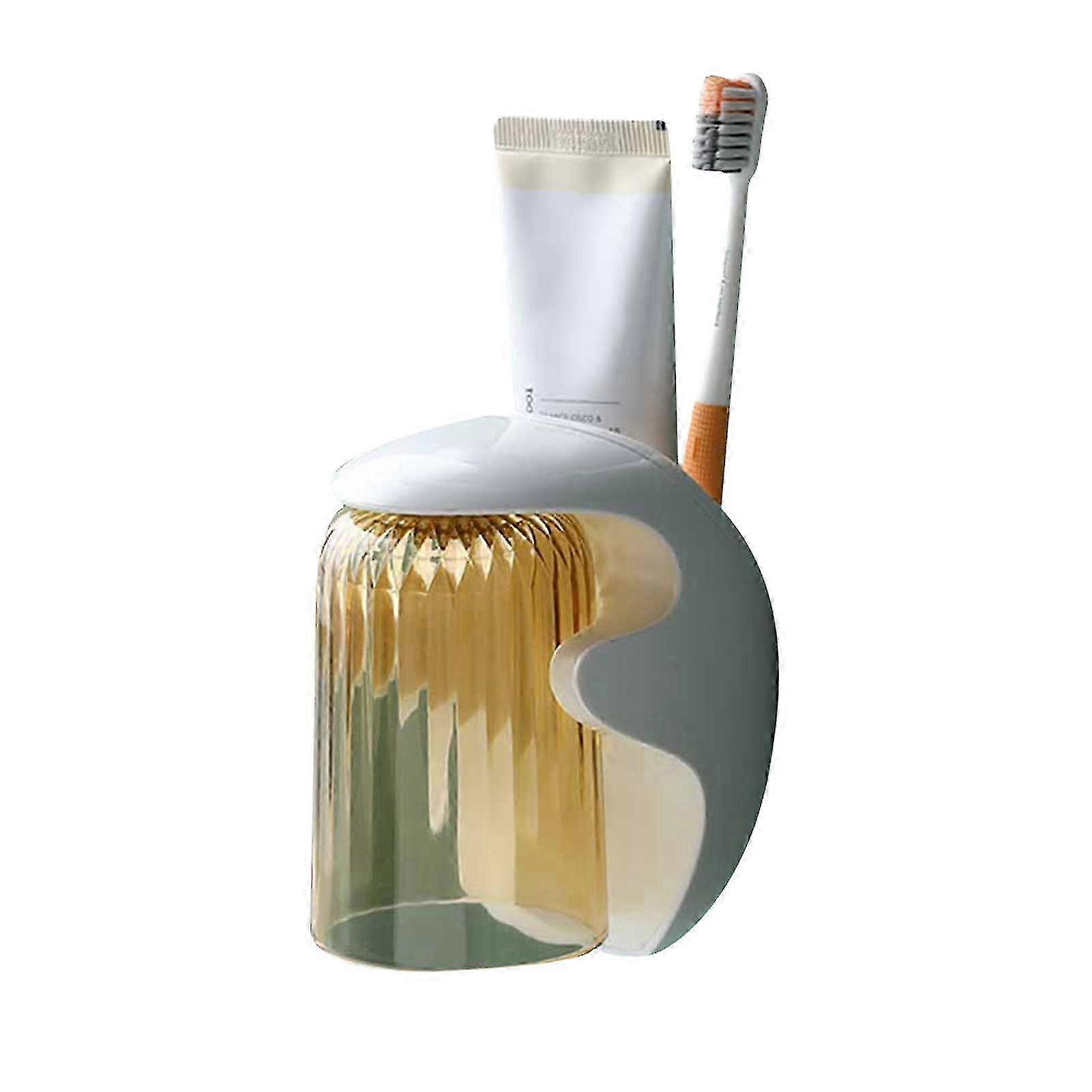 Wall-mounted toothbrush holder/mouthwash cup holder, no drilling required, bathroom accessory, Tawny