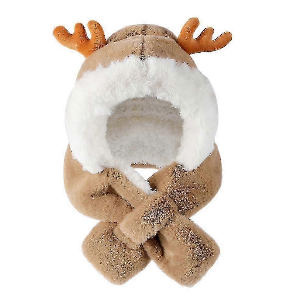 Soft and warm winter hats for boys and girls, with cute reindeer antler decorations, Khaki