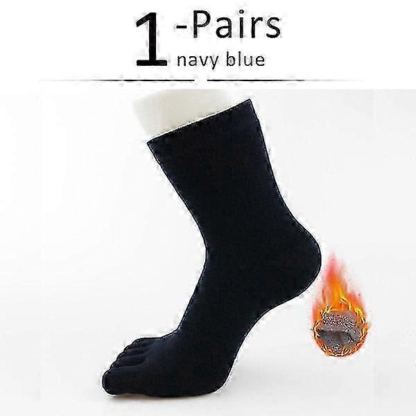 Men's Winter Five-Toe Terry Socks, Pure Cotton Breathable Business, Navy Blue
