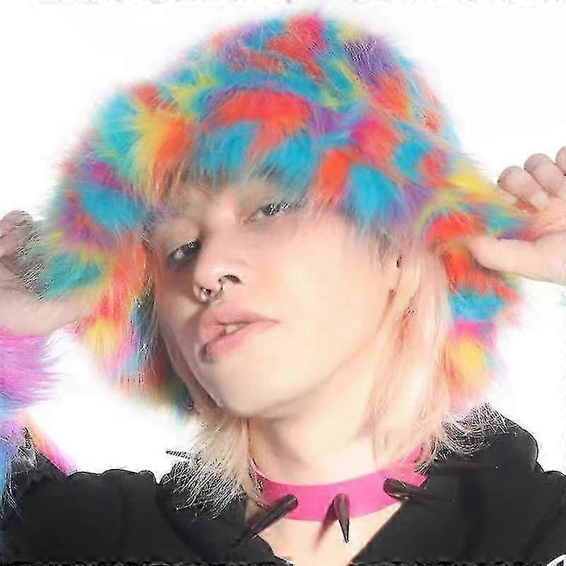 Women's plush fisherman's hat, faux fur bucket hat, winter warmth, earmuffs, COLOR 1