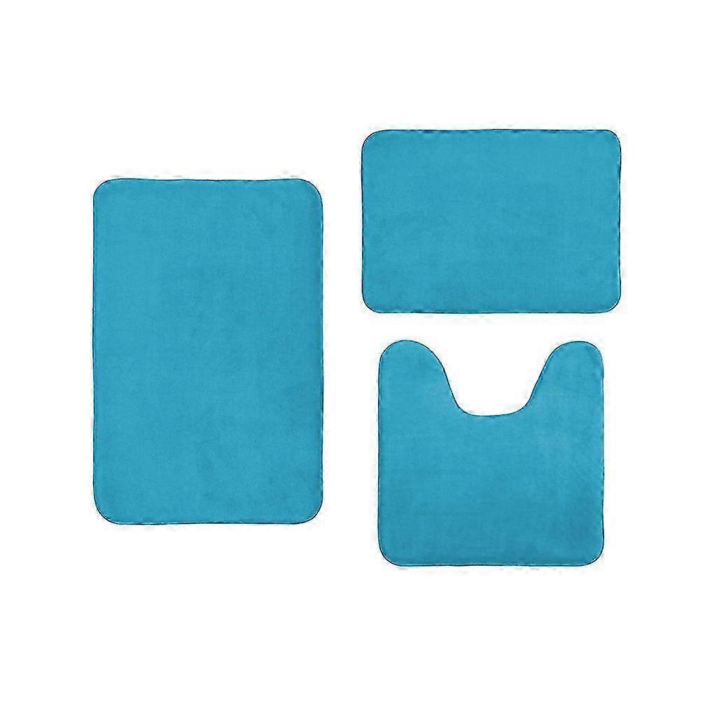 Coral fleece memory foam bathroom rug set (3 pieces), Light Blue