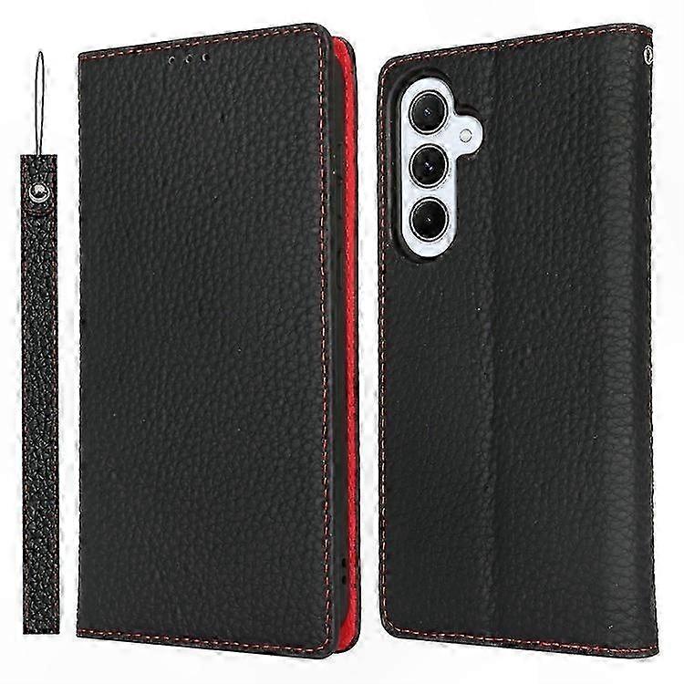 Cow Leather Wallet Case for Galaxy S25+ with Litchi Texture