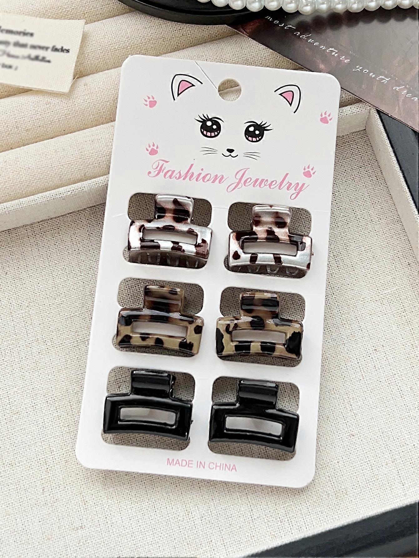 6PCS Tortoise Hair Claw Clips,Non-Slip Small Jaw Clip,Leopard Hair Clamps,Strong Hold Hair Styling Accessories for Women Girls