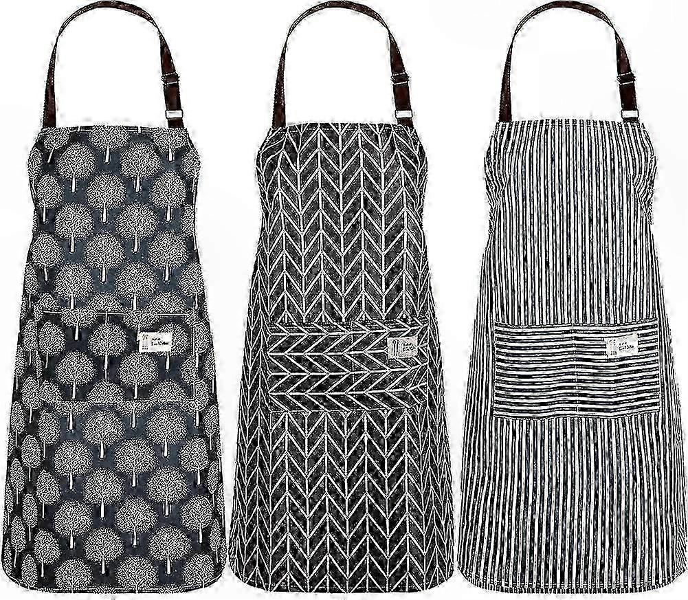 Waterproof Kitchen Aprons with Pockets for Women, Adjustable 3-Pack