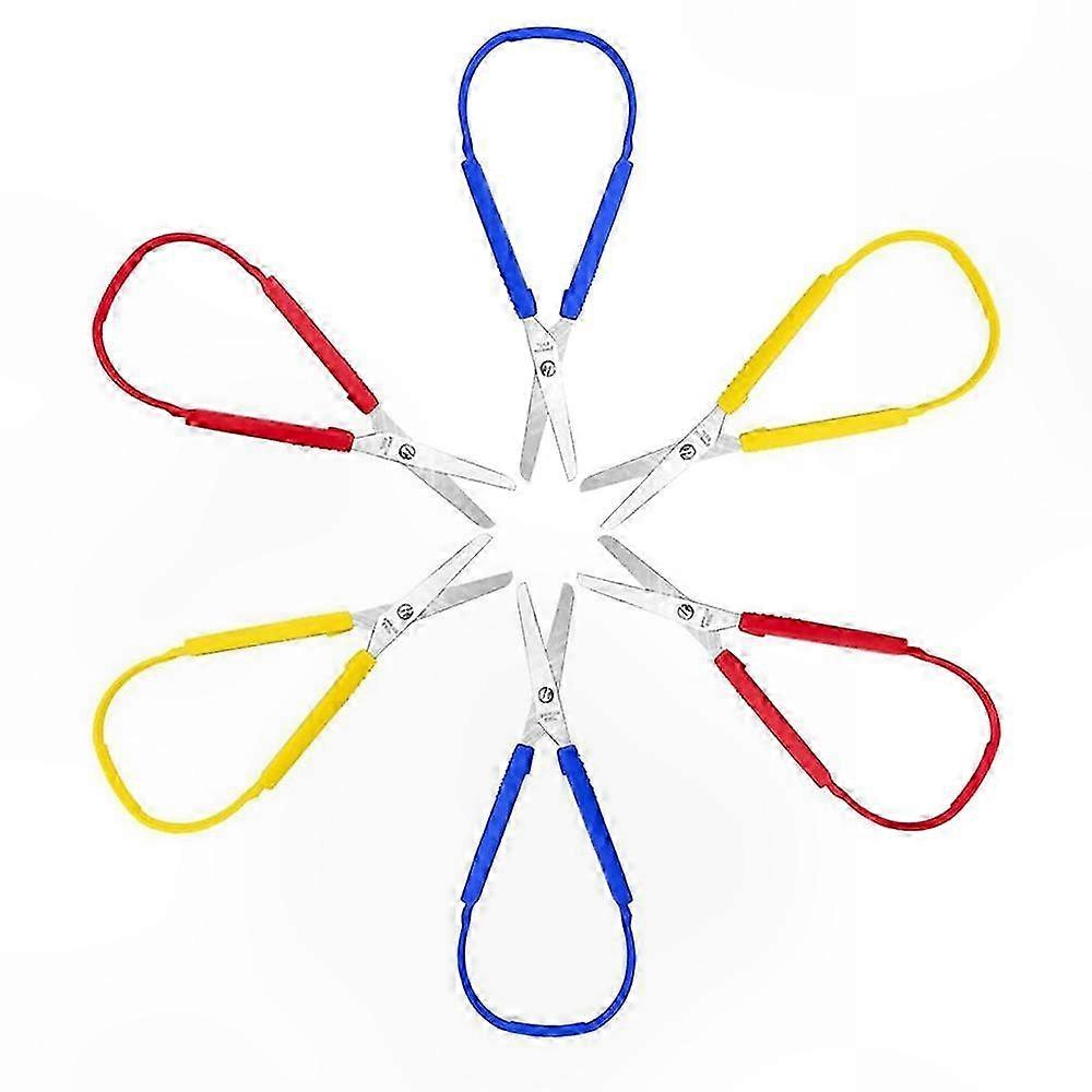 6-Pack Colorful Self-Opening Scissors with Loop Grip for Kids and Adults Adaptive Cutting Tool
