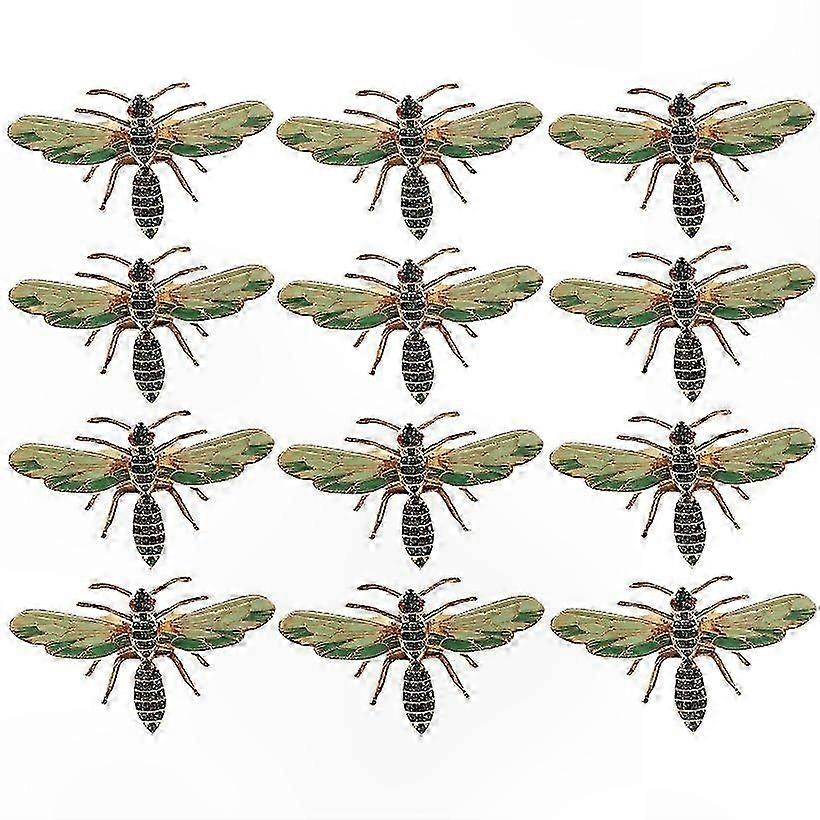 12Pcs Green Dragonfly Napkin Rings Alloy Insect Design Drip Diamond Buckle for Paper Towels