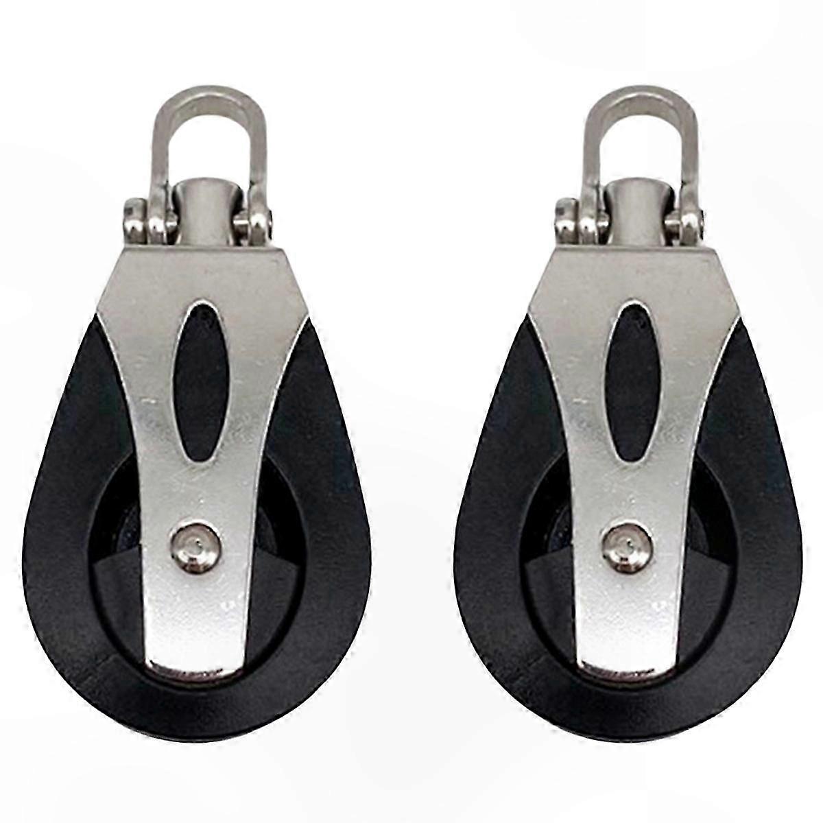 Aftermarket replacement boat pulley block. Made of stainless steel and nylon, corrosion-resistant, durable, and strong. Features exceptionally high working load capacity. Nylon pulleys offer low friction coefficient, high impact resistance, and resistance to aging. Low maintenance with long service life. 360-degree rotation prevents rope, cable, or line tangling; easy to use. Equipped with internal bearings for smooth rotation. Includes a slotted pin on the shackle for easy disassembly and cleaning of debris or tangled threads. Lightweight design for easy installation at height. Suitable for fitness equipment, yacht rigging, sailing vessels, and similar applications. Product Name: Universal Head Single Pulley Maximum Load: 600 kg Color: Black + Silver Material: Stainless Steel + Nylon Package Contents: 2 x Universal Single Pulley Note: Color appearance may vary slightly due to lighting and screen settings. Measurement tolerance: ±1–3 cm.