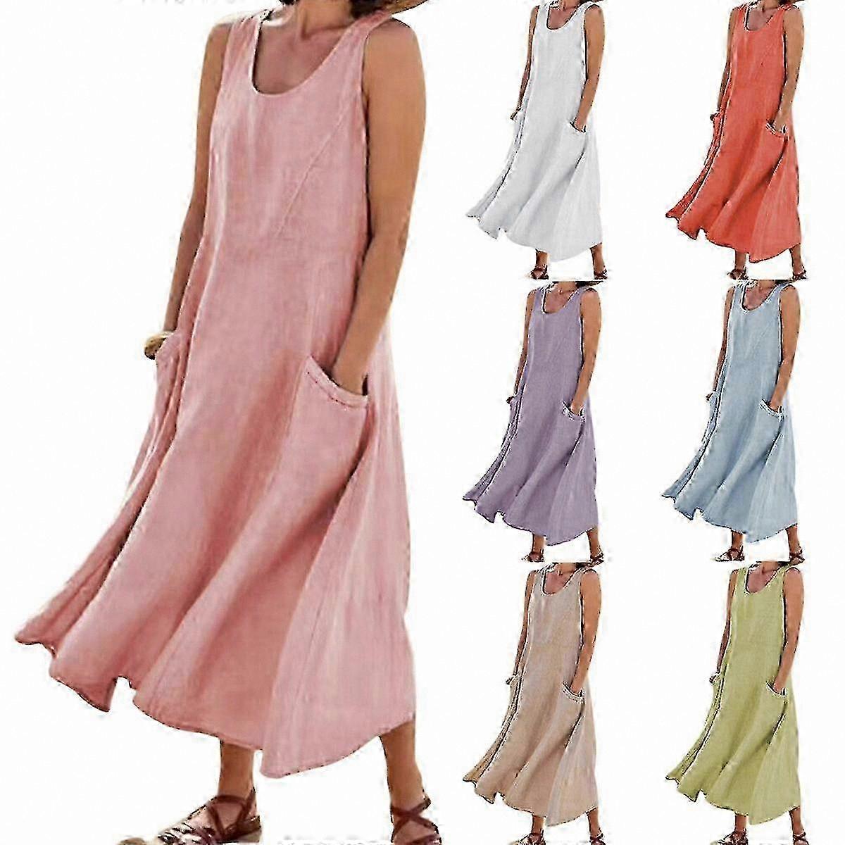 Sleeveless Maxi Dress for Women, Cotton Linen Solid Summer Dress with Pockets for Ladies