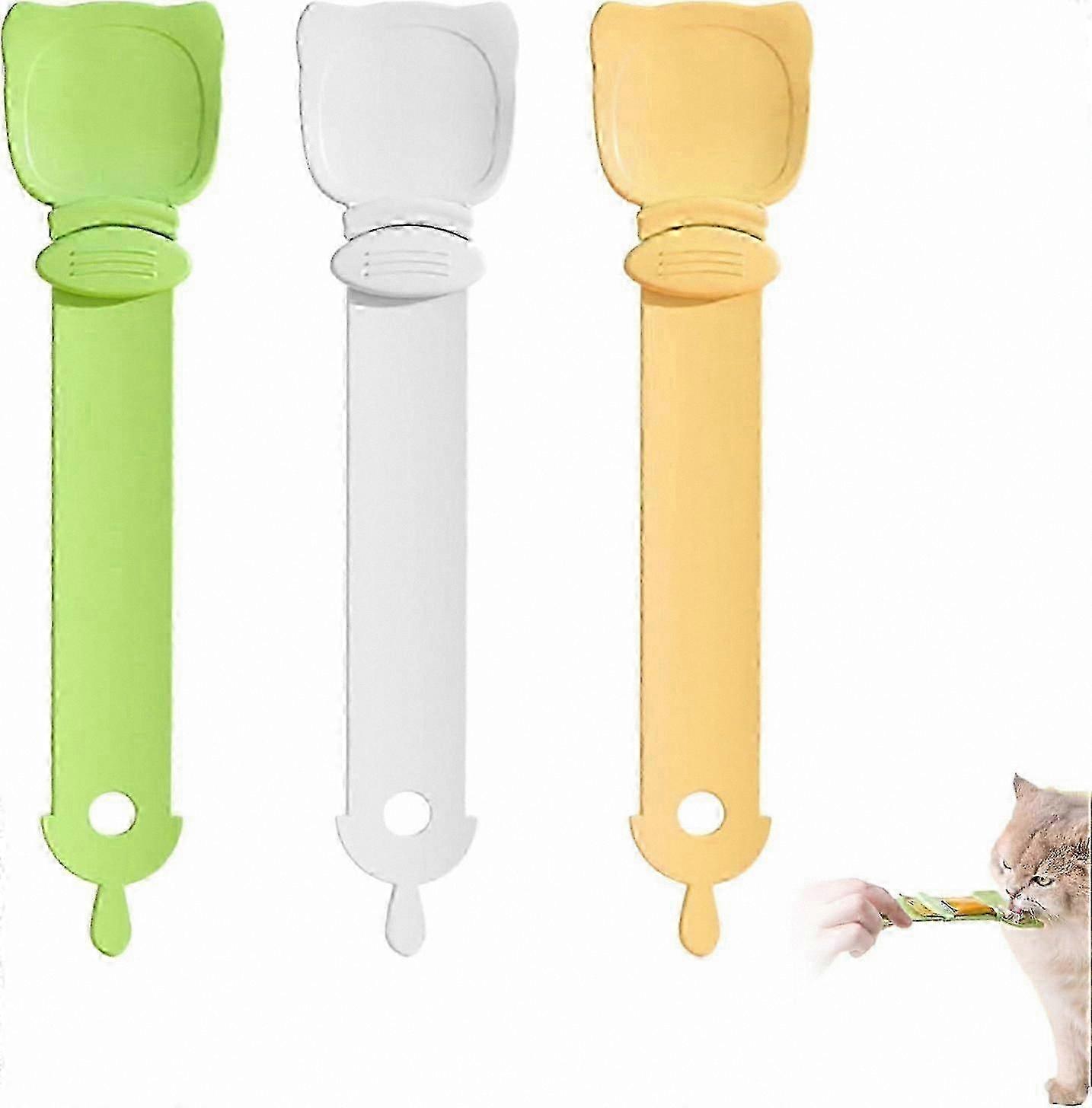 3-Pack Cat Strip Dispenser with Spoon, Multi-Color Treat Feeder for Wet Food, Sliding Squeeze Tool for Feline Snacks