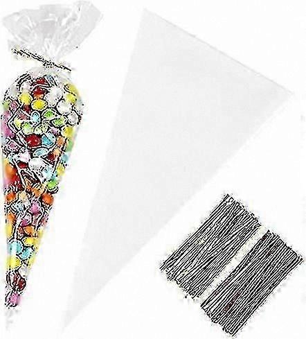 Clear Cone Treat Bags, 5x10 Inches, 200 Pack, Plastic Popcorn Bags with Twist Ties for Events